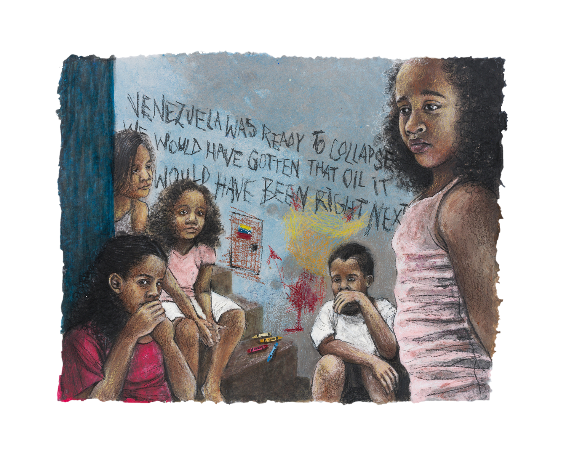11 x 13 inches (28 x 33 cm) Color pencils, markers, and linen pulp paint on handmade paper