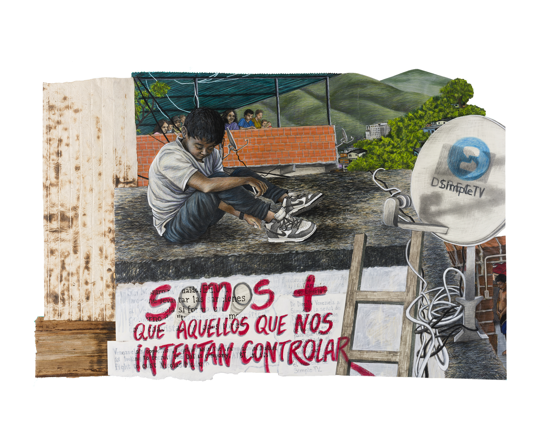 21.5 x 33 inches ( 54.6 x 83.8 cm) Graphite, color pencils, markers, acrylic, and paper collage