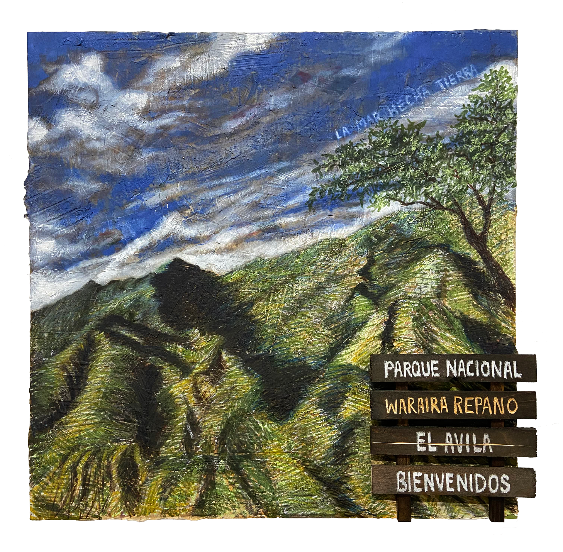 “La Mar Hecha Tierra” (written in the painted sky) translates to “The Sea turned to Land”